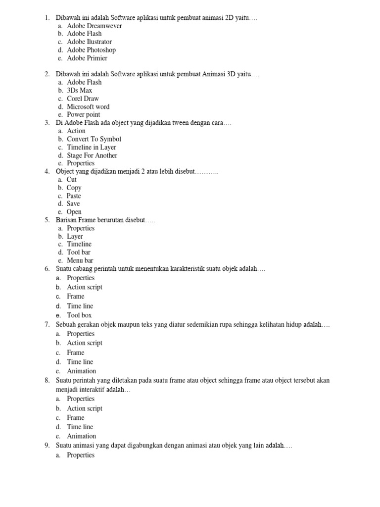 Soal esai animasi 3D dapat bervariasi dalam tingkat kesulitan dan fokusnya. Berikut adalah beberapa kategori umum yang sering muncul: