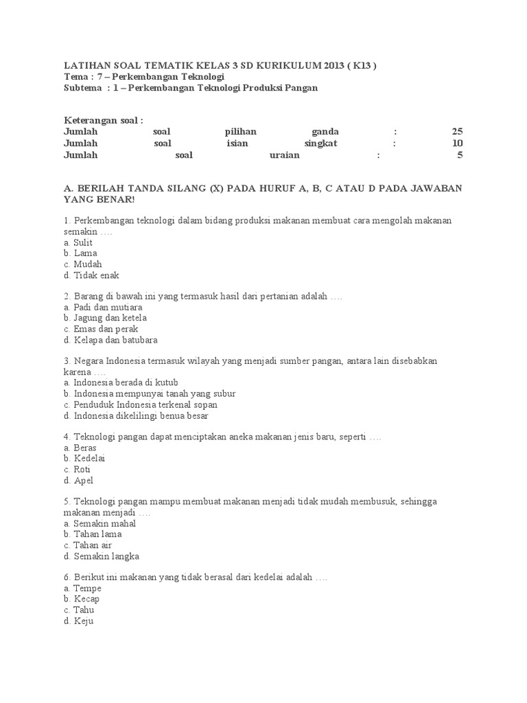 Soal esai kalimat untuk kelas 3 SD biasanya memiliki beberapa format: